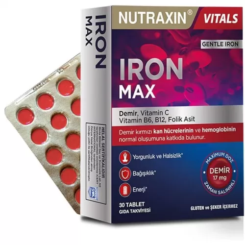 Etiketler: Nutraxin Iron Max 17 mg 30 Tablet